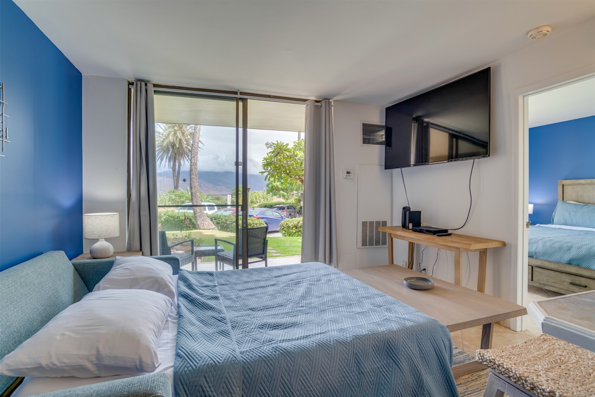 • Queen sleeper sofa in the living room (sleeps up to 6)